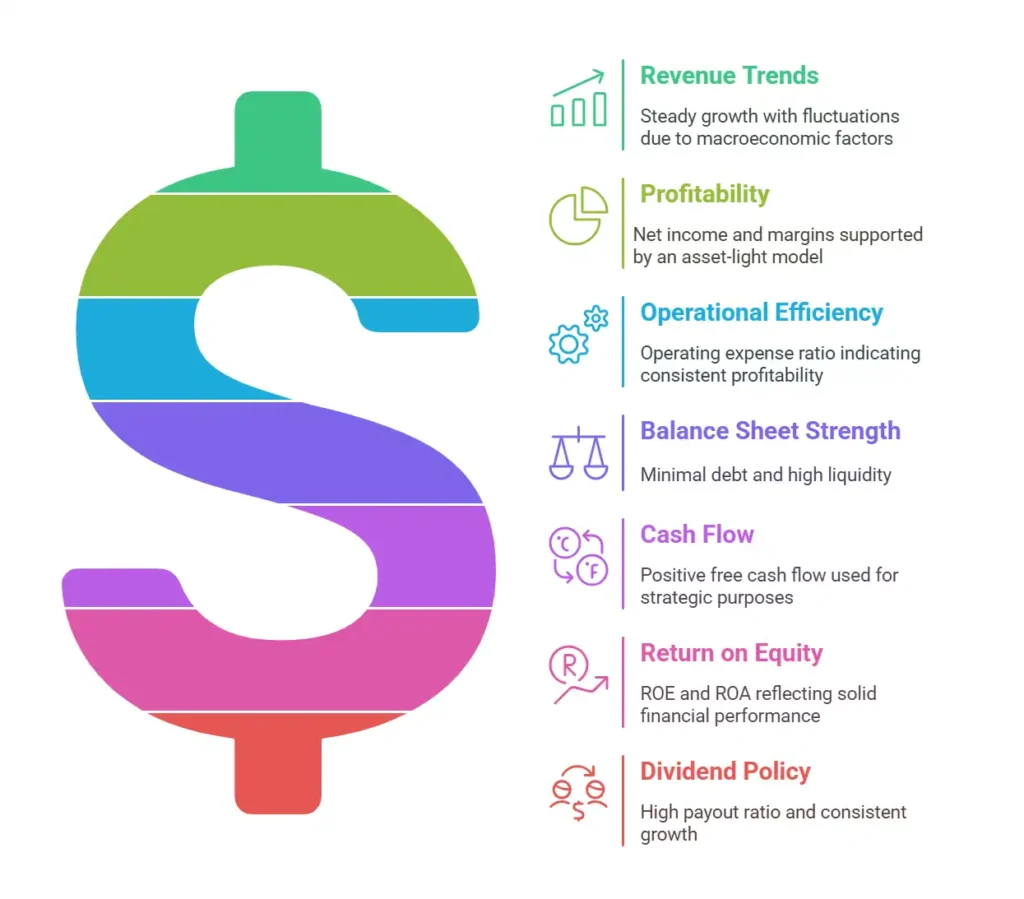- Cash Flow Analysis: Positive and stable free cash flow, used for dividends, share repurchases, and reinvestment in technology and service enhancements.